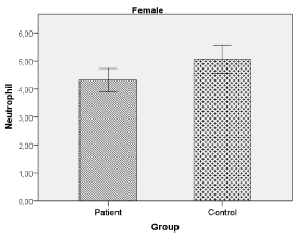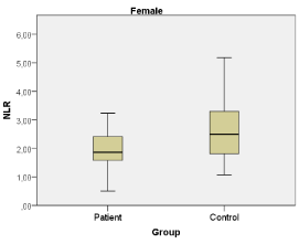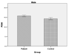 Results:The PLR and NLR values were significantly higher in the control group compared with the female patient group. The PDW and MCH values were significantly higher in the male patient group compared with the control group.