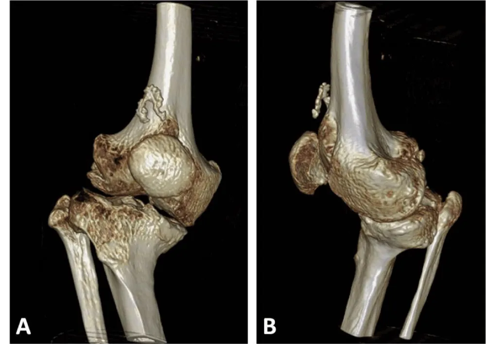 Some authors, such as Wallace, et al. [6], argue that a staged correction of extra-articular deformity is a safer and more effective approach to improving limb alignment before knee replacement surgery. Zmerly, et al. [7], on the other hand, believe that the one-stage procedure increases the risk of complications such as joint stiffness, deep vein thrombosis, malunion, and surgical site infection. Similarly, Lausman, et al. [8] reported higher rates of implant-associated complications and revision surgeries compared to the general population.
