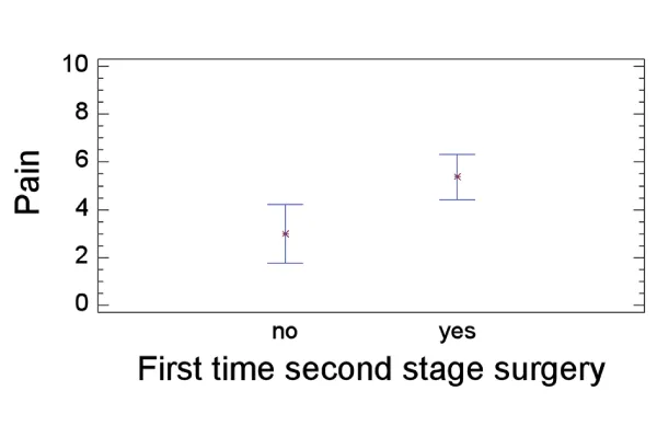 There were statistically significant differences, since the p-value was <0.05. Patients subjected for the first time to a second surgery felt more pain than those who had already experienced a similar surgical act (Figure 2).