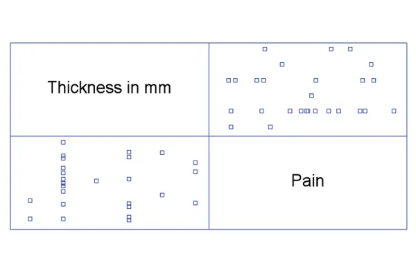 Every analyzed data were moved to the Statgraphics Plus 5.1 program to carry out the statistical study. The statistical study consisted in relating quantitative and qualitative variables in a one-way Anova study (comparison of pain with type of implant, gingival biotype, position in the arch, first surgery, sex and subject) and only quantitative variables, so a correlation multivariable analysis was used (pain vs. gingival thickness).